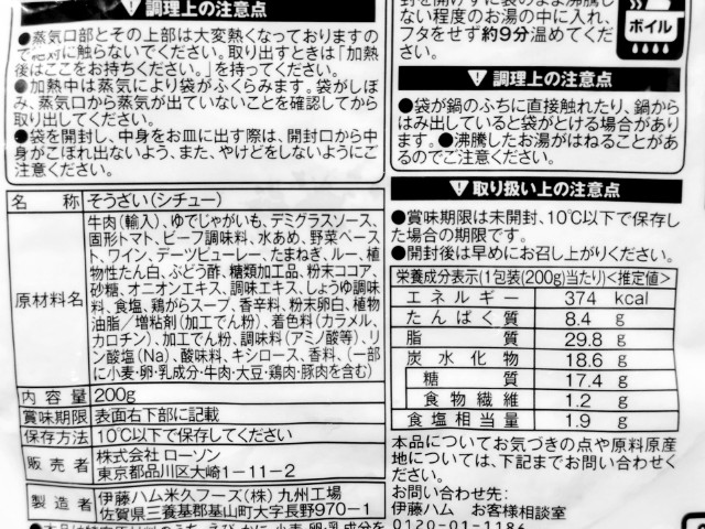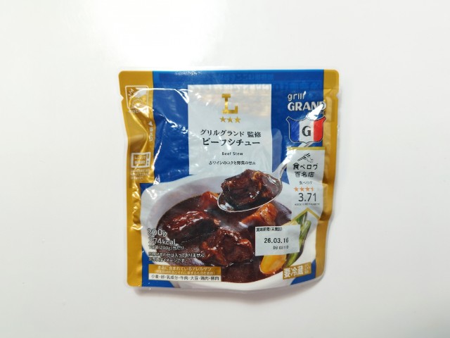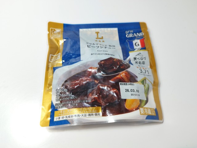 ローソンの商品「グリルグランド監修 ビーフシチュー」を食べてみました。