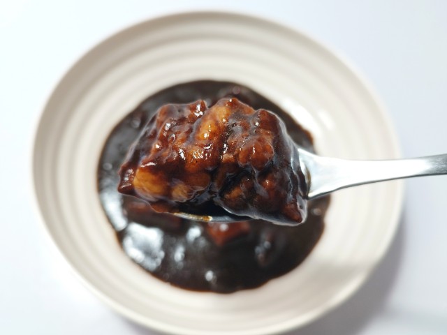 グリルグランド監修のビーフシチューです。ちなみにネットでグリルグランドを調べたところ、東京都浅草にある1941年創業の老舗洋食店で、3代にわたり受け継がれる伝統のデミグラスソースと、オムライスやビーフシチュー、カニクリームコロッケなどの本格的な洋食が人気のお店だそうです。そんなビーフシチューですが、デミグラスソースの濃厚な味わいと野菜の甘味、ほのかな酸味があって、美味しいのひと言です。具材にはゴロッと大きな牛肉とじゃがいもが入っていて、食べ応えがあります。特に牛肉はとろけるような食感と脂の甘味があって、ハマってしまう美味しさです。今回はそのまま食べましたが、パンやご飯と合わせて食べても美味しいと思います。内容量は1食分にちょうどよく、お腹も満たされます。ぜひビーフシチューを食べてみてください。
