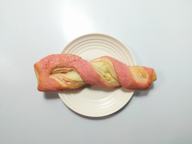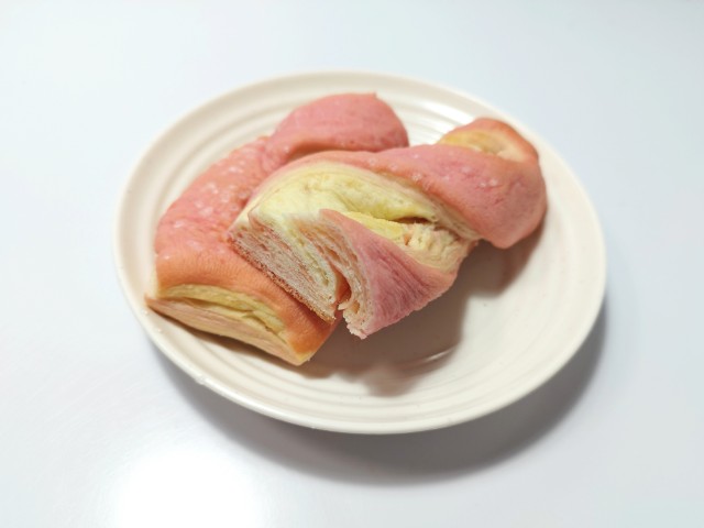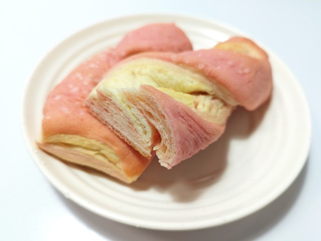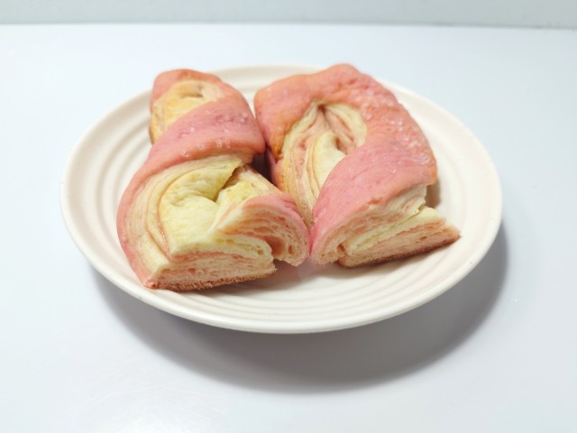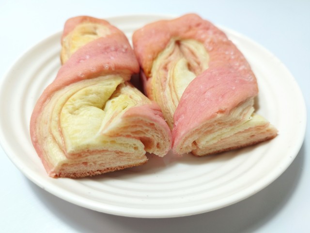 デニッシュ生地にはいちご風味のクリームが折り込まれています。