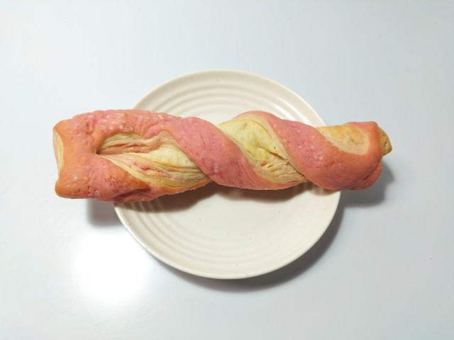 いちごを使ったツイストデニッシュです。見つけた瞬間に手に取ってしまった商品で、個人的には楽しみにしていた新商品の一つでもあります。そんないちごのツイストデニッシュですが、上にかかったいちごのビス生地はホロホロとした食感といちごの味わい、ほのかな甘味があって、デニッシュ生地との相性抜群です。トッピングのザラメはザクザクとした食感で、食感のアクセントになっています。いちご風味のクリームが折り込まれたデニッシュ生地はしっとりとした食感といちごの風味で、安定の美味しさです。全体的に甘過ぎず、ザラメのザクザク食感もあって、最後のひと口まで飽きずに食べられます。大きさは普通の菓子パンサイズで、おやつや小腹が空いた時にピッタリです。ぜひいちごのツイストデニッシュを食べてみてください。