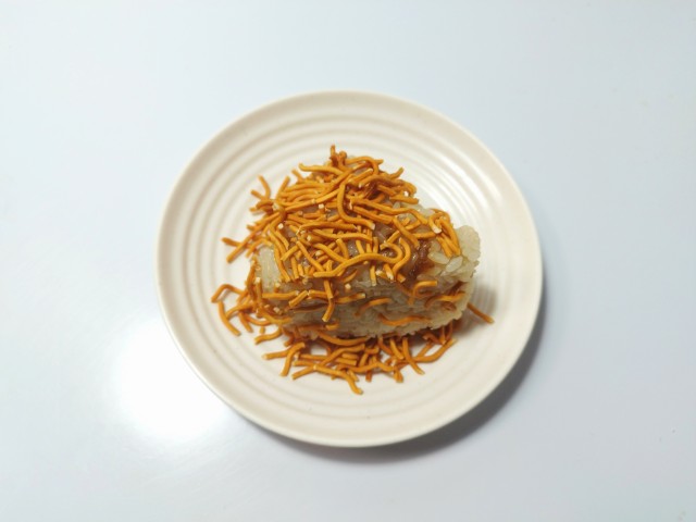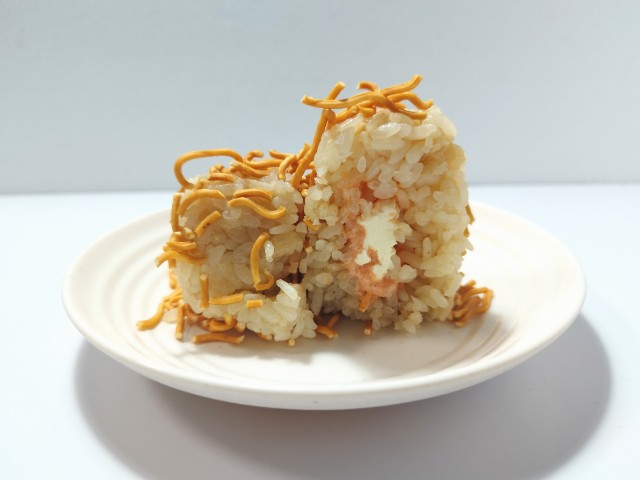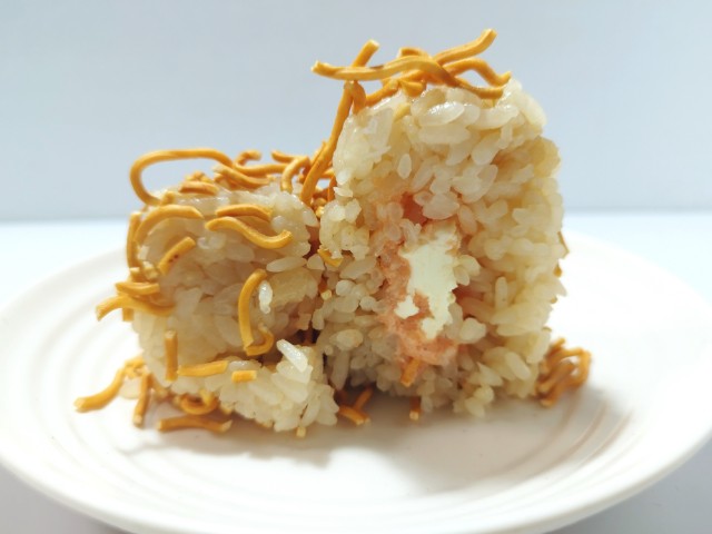 ベビースターをまぶして食べるおむすびです。商品名とその内容に惹かれて買ってみました。そんなシャカふりおむすびですが、別添のベビースターをまぶして食べるおむすびで、説明によると容器のフタ側にベビースターを入れて、もう一度閉じた後によく振って食べるようです。まず、一番始めに思った事はかなり食べづらいです。容器に入ったままだと食べられないので、容器から出すとベビースターがポロポロと落ちてきます。さらに食べ進める段階でもポロポロとこぼれます。味においては、ベビースターの味がソース風味のご飯と中具の明太マヨとチーズにピッタリと合っていて、ハマってしまう美味しさです。また、ベビースターの食感が良いアクセントになっていて、最後のひと口まで飽きることなく食べられます。始めにベビースターをよく崩してからまぶして食べるとややこぼれるのも防げるかもしれませんが、ベビースターの食感が劣ってしまうので難しい部分かもしれません。個人的には味と食感がかなり良かったので、この食べづらさが無くなれば完璧だと思いました。大きさは普通のおむすびサイズで、小腹が空いた時や主食にあと一品追加したい時にピッタリです。と、ここまで色々と言っておいてなんですが、今回の商品は一部店舗と限られてしまっているので、購入するのはちょっと厳しいかもしれません。ただ、一部店舗で販売として紹介していた商品が、翌々週の新商品としてほぼ全国で発売となったりしているので、この商品ももしかしたら同様に販売されるかもしれません。まだまだ、その地域のセブンイレブンでしか買えない商品はたくさんあって、皆さんの地域にもあると思います。今回の商品もこんな商品を売っているんだ的な感覚で見てもらって、高そうや美味しくなさそうといった見方や、ご自身の地域でしかない商品の比較などにしてもらえたら嬉しく思います。と言っているのに申し訳ないですが、締めの言葉は必要ですので最後に、ぜひベビースター明太チーズのシャカふりおむすびを食べてみてください。