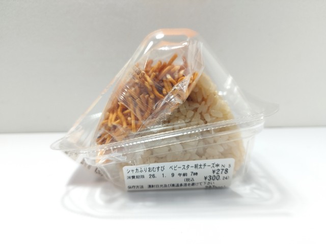 セブンイレブンの今週の新商品「シャカふりおむすび ベビースター明太チーズ」を食べてみました。