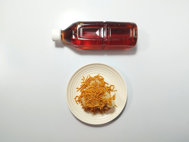 フタ側にベビースターを入れて、フタを閉めてシャカシャカと振ったら完成です。