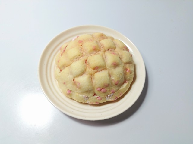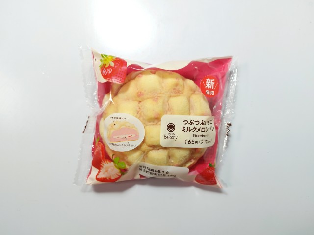 ファミリーマートの今週の新商品「つぶつぶいちごミルクメロンパン」を食べてみました。