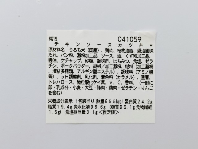 熱量:655kcal、たんぱく質:24.2g、脂質:19.4g、炭水化物:96.6g(糖質:95.1g、食物繊維:1.5g)、食塩相当量:3.1g