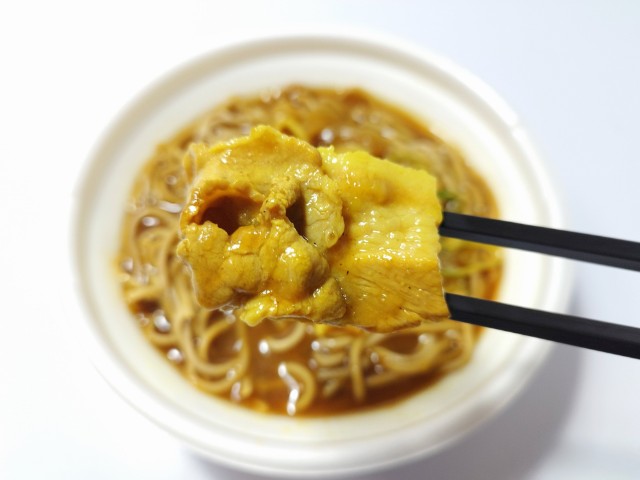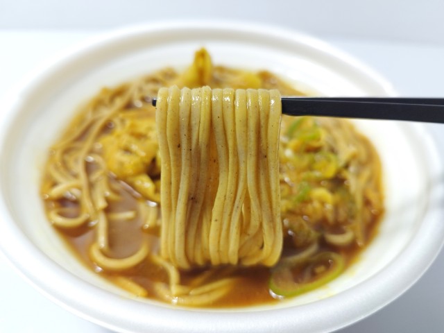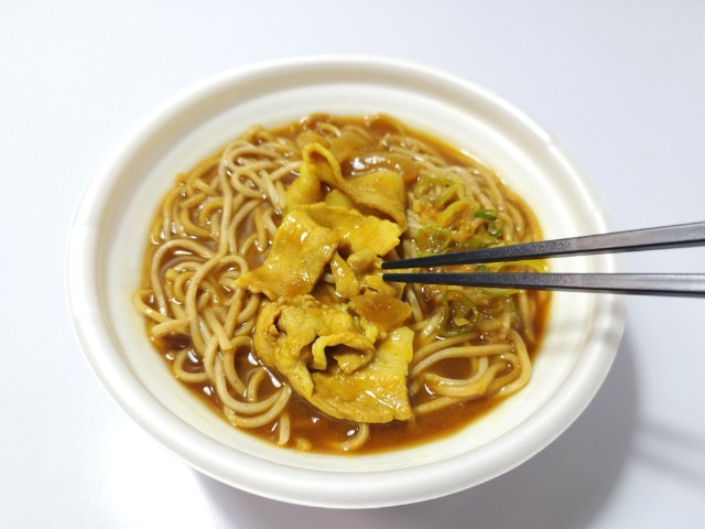 セブンイレブンの今週の新商品「おだし香るカレーそば」を食べてみました。
