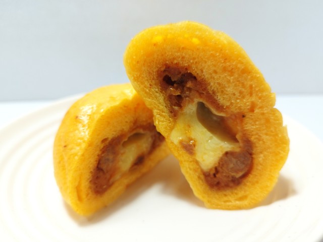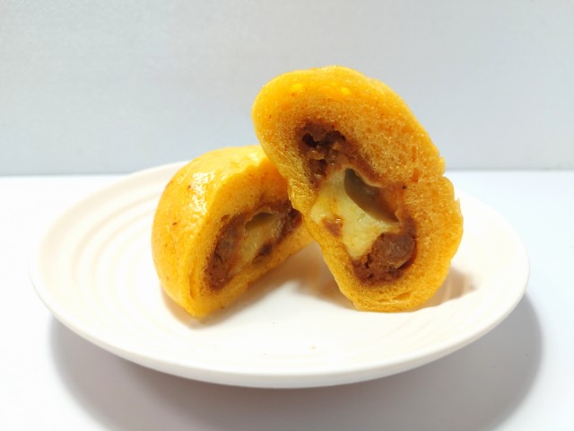 菰田欣也シェフ監修の麻辣チーズ肉まんです。有名シェフ監修の中華まんとの事で、見つけた瞬間に買ってしまいました。そんな麻辣チーズ肉まんですが、生地はふんわりとした食感と歯切れの良さ、ほのかな甘味があって、どんどんと食べ進められます。餡はだしの旨味と花椒の痺れ、唐辛子のピリリとした辛味があって、美味しいのひと言です。一緒に入っているのびるチーズがポイントで、チーズのコクが加わることで、餡の美味しさがより引き立っています。辛味よりも痺れがしっかりとしていて、花椒の風味が心地よく、最後のひと口まで飽きることなく食べられます。大きさは普通の中華まんサイズで、おやつや小腹が空いた時にピッタリです。ぜひ麻辣チーズ肉まんを食べてみてください。