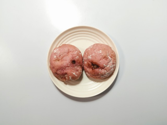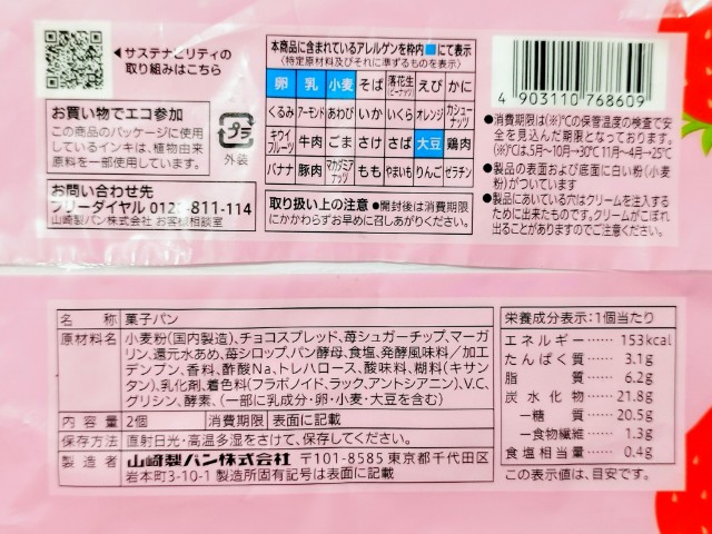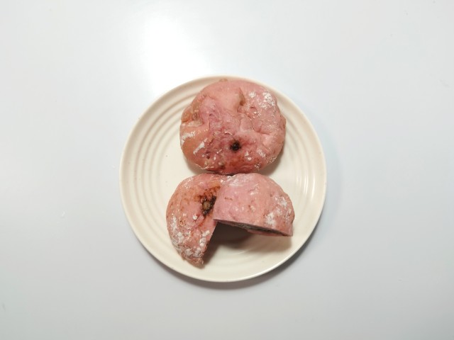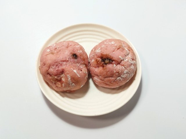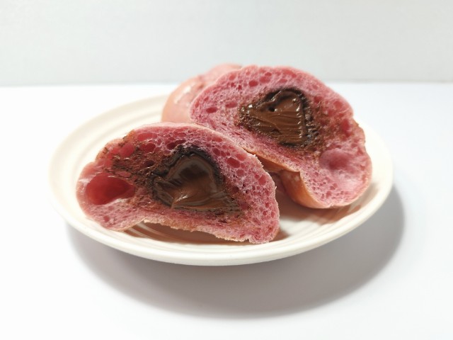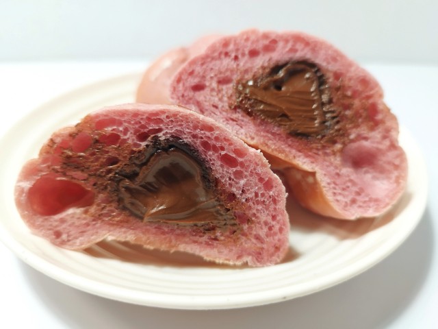 チョコクリームが入ったいちご風味の菓子パンです。まんまるいちごチョコパンの言葉に惹かれて買ってみました。そんなまんまるいちごチョコパンですが、生地はしっとりとした食感といちごの風味があって、安定の美味しさです。また、生地に練り込まれた苺シュガーチップが味のアクセントになっていて、さらに美味しく食べ進められます。中にはチョコクリームが入っていて、とろりとした食感とチョコの甘味で、いちご風味の生地ともよく合います。2個入ですが、1個の大きさは手のひらサイズより少し小さいくらいなので、一人でも普通に食べ切れます。ぜひまんまるいちごチョコパンを食べてみてください。