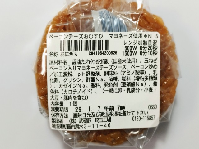 セブンイレブンの今週の新商品「ベーコンチーズおむすび マヨネーズ使用」を食べてみました。