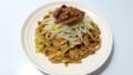 茹でたもやしと温めたアブラと肉っ!をのせたら完成です。