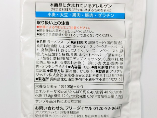 今回、私が頂いた商品の詳細③がこちらです。