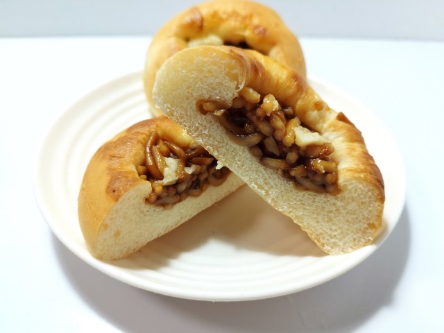焼きそばがのったパンです。以前の購入が2025年10月7日発売だったので、約3ヶ月近く経っていますが、価格は変わっていません。そんな焼きそばパンですが、生地はふんわりとした食感と歯切れの良さで、これだけでも美味しく食べ進められます。中央には焼きそばがのっていて、ソースの味わいとマヨネーズの酸味があって、生地とのバランスも良いです。今回はそのまま食べましたが、余裕があればトースターで軽く温めるとソースの風味とパンの香ばしさがアップすると思います。2個入ですが、1個は手のひらサイズくらいなので、一人でも普通に食べ切れます。もちろんシェアするにもピッタリです。ぜひ焼きそばパンを食べてみて下さい。