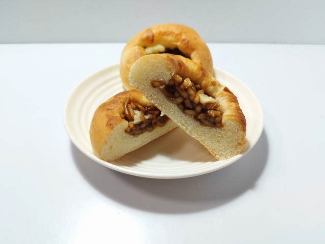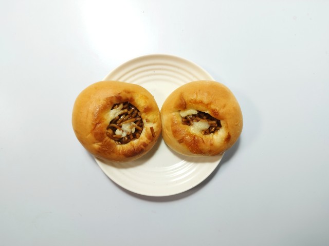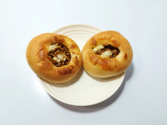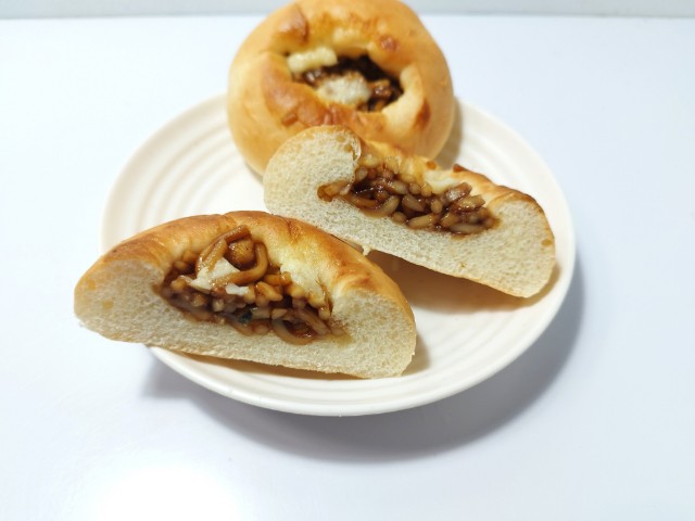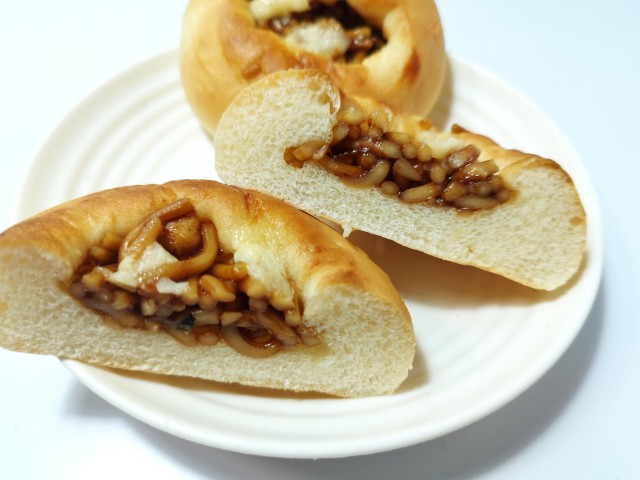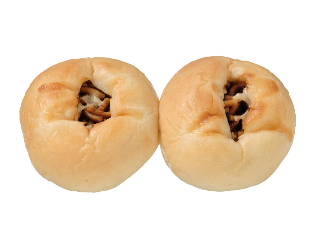 湯種を使用したもっちり生地で焼きそばを包み、マヨネーズを絞り焼き上げました。