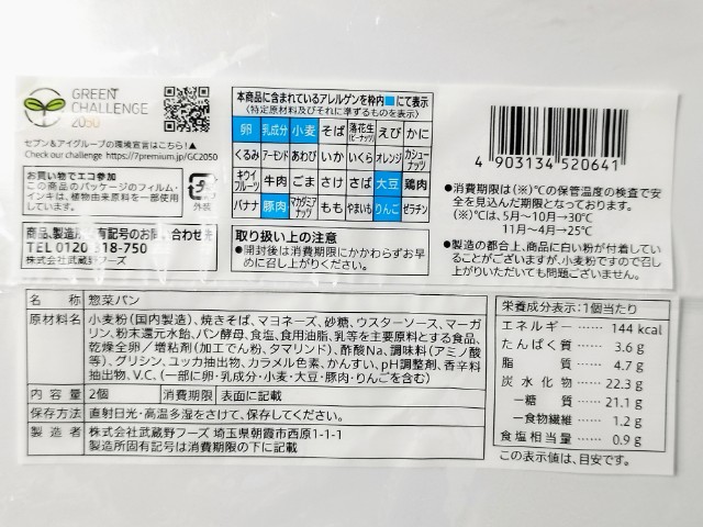 セブンイレブンの今週の新商品「7プレミアム 焼きそばパン 2個入」を食べてみました。