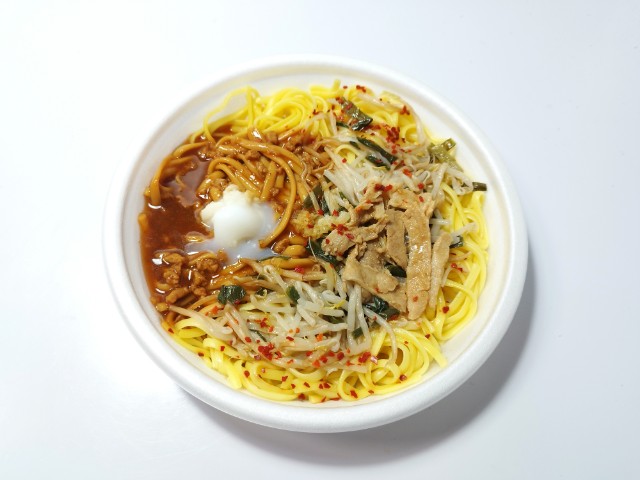 食べごたえのある押出リングイネの生パスタです。醤油、肉系の旨みににんにくがきいた味付けです。具材は豚肉、焼きあげたもやし・にら、背脂、にんにくなどをのせました。※茨城県、栃木県、群馬県、埼玉県、千葉県、東京都の一部店舗での取り扱いです。