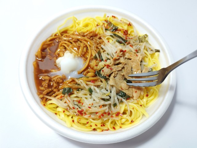 ファミリーマートの商品「【関東の一部】コク旨醤油あんが決め手 スタミナ醤油パスタ」を食べてみました。