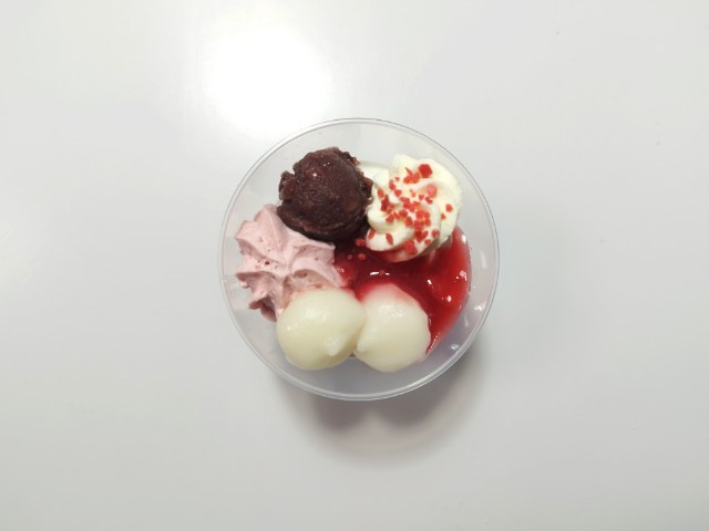 つぶあんいちごチップキャンディがのったホイップクリームです。