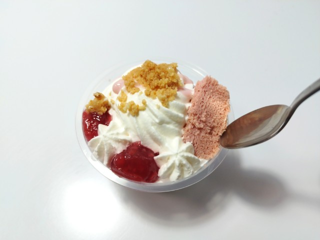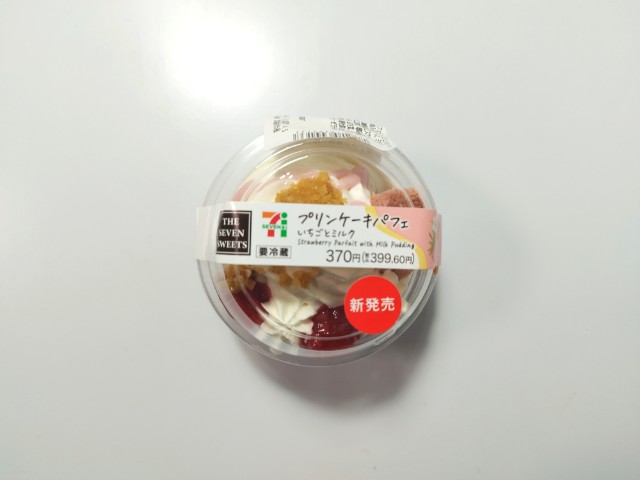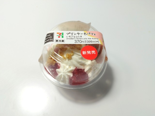 セブンイレブンの商品「プリンケーキパフェ いちごとミルク」を食べてみました。