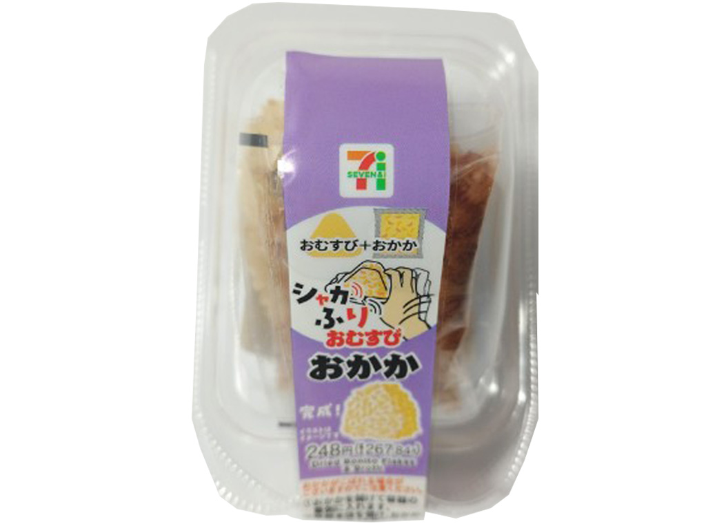 シャカふりおむすび おかか【セブンイレブン】かつおぶしの風味を楽しめるおむすびです!!