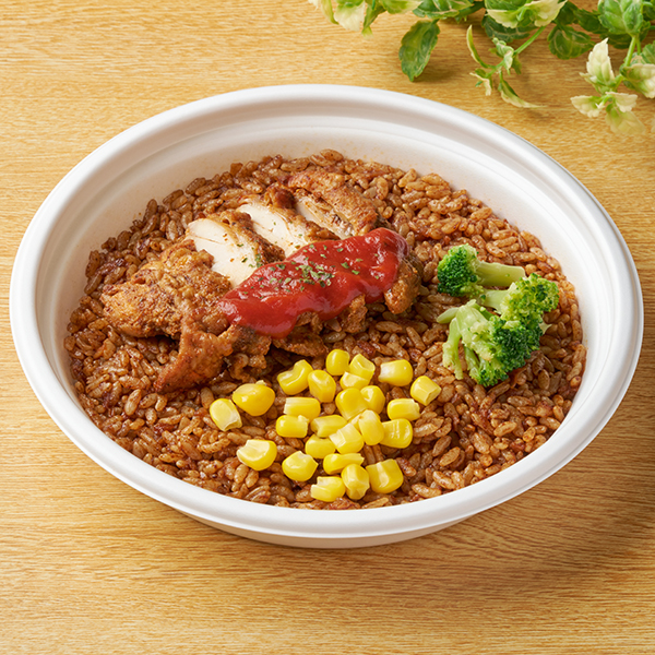 旨辛仕立てなピラフの上にスパイシーなグリルチキンをトッピングした商品です。
