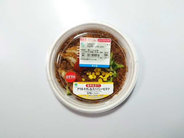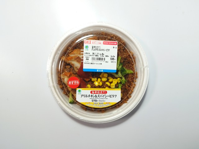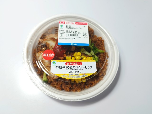 ファミリーマートの商品「旨辛仕立て!グリルチキン&スパイシーピラフ」を食べてみました。