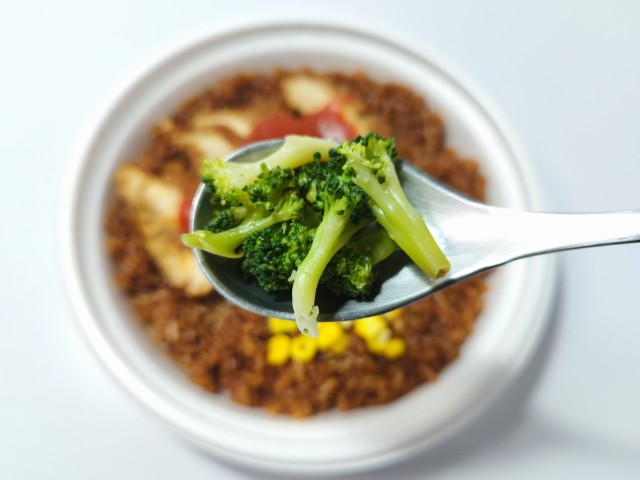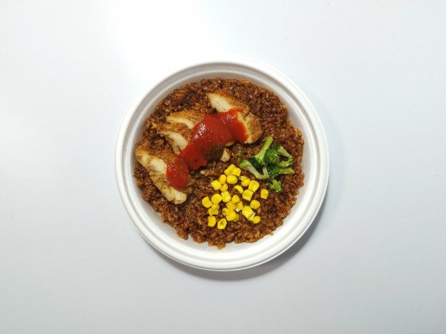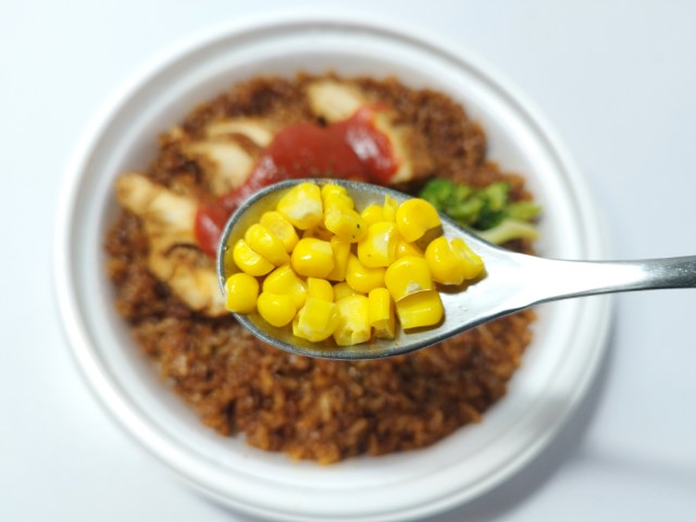 グリルチキンとスパイシーピラフのお弁当です。旨辛仕立ての言葉に惹かれて買ってみました。そんなグリルチキン&スパイシーピラフですが、グリルチキンは鶏の旨味とスパイスの風味があって、ご飯が進む一品です。スパイシーピラフはパラパラとした食感とスパイスの味わい、ほどよい辛味で、これだけでも美味しく食べ進められます。グリルチキンの他にコーンやブロッコリーといった具材もあって、スパイシーピラフと合わせて食べるのにちょうど良いです。内容量は1食分にちょうどよく、お腹も満たされます。ぜひグリルチキン&スパイシーピラフを食べてみて下さい。