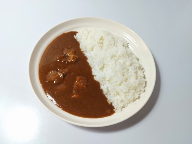 温めた欧風ビーフカレーをかけたら完成です。