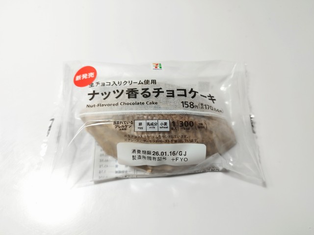 セブンイレブンの今週の新商品「7P ナッツ香るチョコケーキ」を食べてみました。