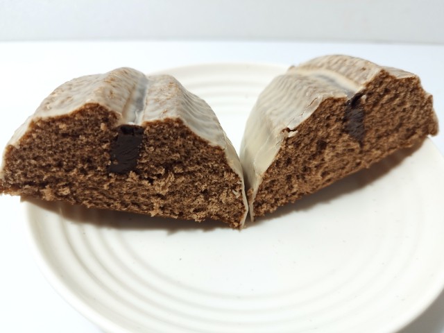 ナッツ香るチョコケーキです。商品名に惹かれて買ってみた商品で、個人的には楽しみにしていた新商品の一つでもあります。そんなナッツ香るチョコケーキですが、チョコ風味のケーキ生地はふんわりとした食感とくちどけの良さ、チョコの甘味があって、美味しいのひと言です。アーモンドグレーズはアーモンドの風味とほどよい甘味で、味のアクセントになっています。中にはナッツ風味の生チョコ入りクリームが入っていて、とろりとした食感とナッツの風味で、生地ともよく合います。かなりしっかりとした甘味なので、甘いのが好きな方にはピッタリだと思います。大きさは普通の菓子パンサイズで、おやつや軽く甘味が欲しい時にオススメです。ぜひナッツ香るチョコケーキを食べてみてください。