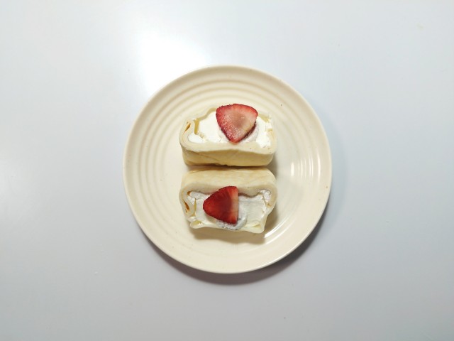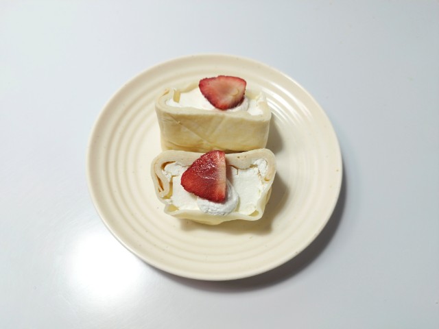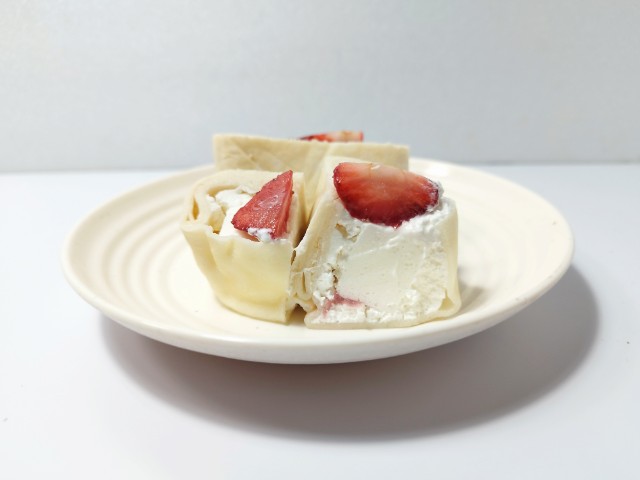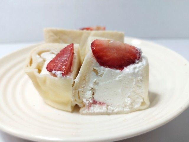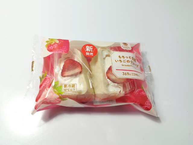 ファミリーマートの商品「【ファミマの白をまとったいちご狩りⓇ】もちっと食感いちごのクレープ」を食べてみました。