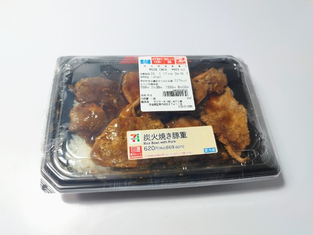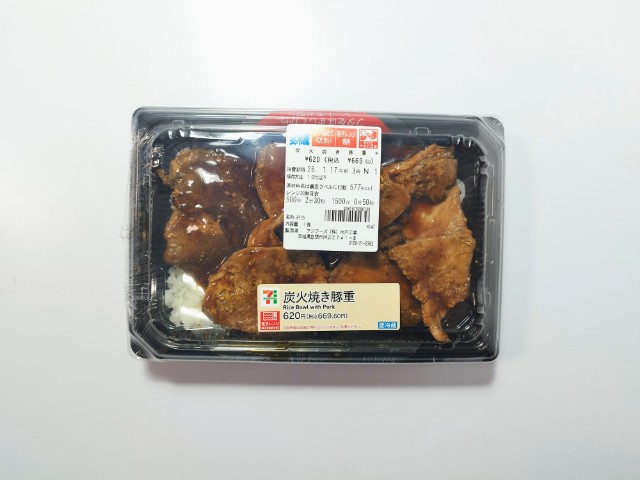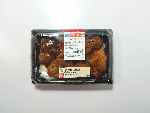 セブンイレブンの今週の新商品「炭火焼き豚重」を食べてみました。