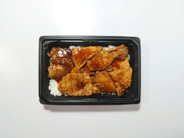 豚ロース肉がのったお弁当です。見た目と商品名に惹かれて買ってみました。そんな炭火焼き豚重ですが、豚ロース肉は豚の旨味と柔らかい肉質、炭火の香りがあって、食べ出すと止まらなくなる美味しさです。甘辛たれは、醤油の味わいとほどよい甘味で、豚ロース肉の美味しさがさらに引き立っています。今回はそのまま食べましたが、味変で七味を入れたり、生卵を落としても美味しいと思います。内容量は1食分にちょうどよく、お腹も満たされます。ぜひ炭火焼き豚重を食べてみてください。
