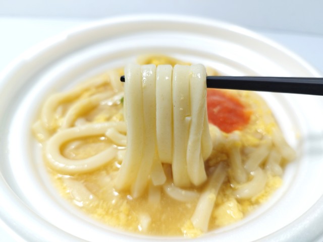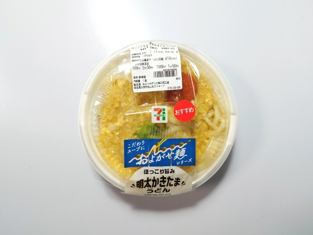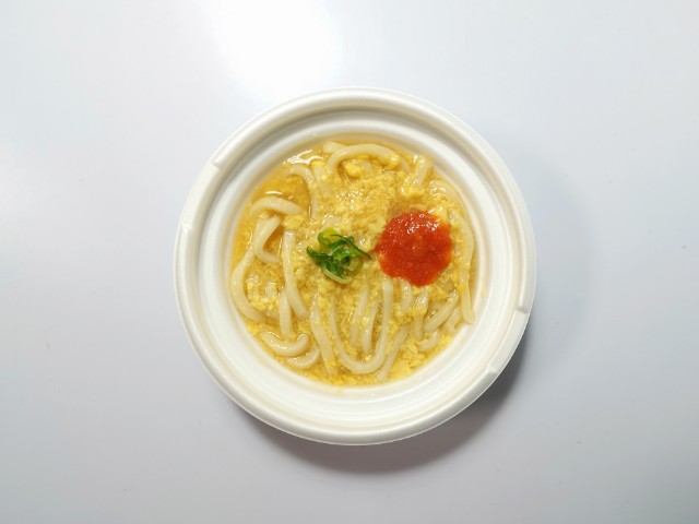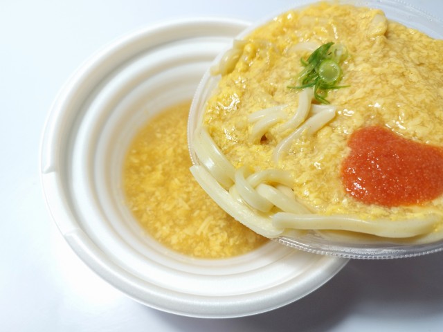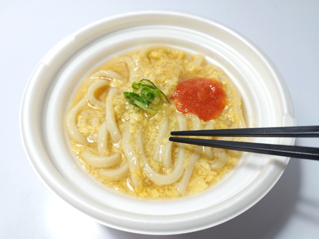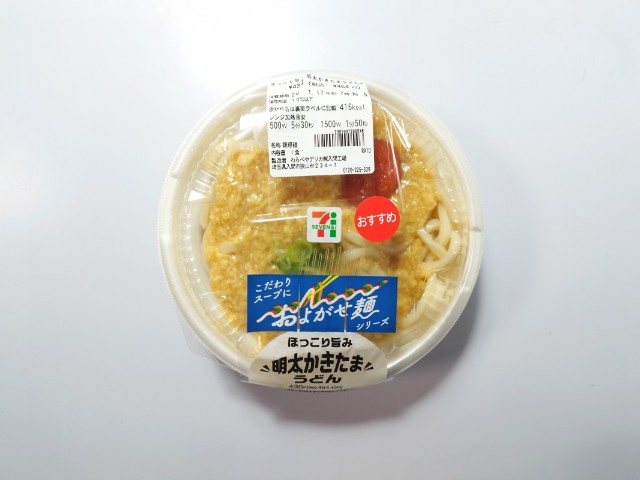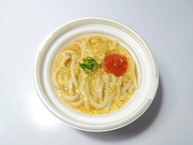 セブンイレブンの商品「ほっこり旨み明太かきたまうどん」を食べてみました。