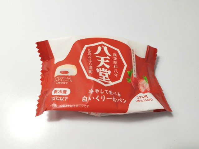 ファミリーマートの商品「【ファミマの白をまとったいちご狩りⓇ】冷やして食べる白いくりーむパン 福岡あまおういちご」を食べてみました。