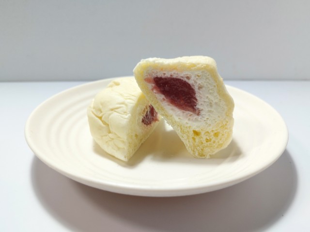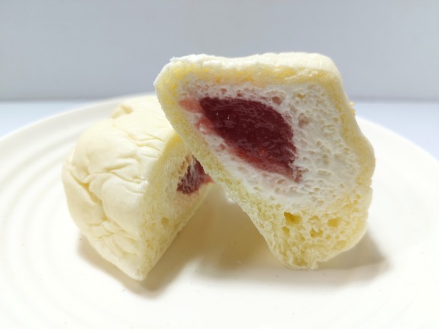 福岡あまおういちごを使った白いくりーむパンです。ファミリーマートでは1月6日より「ファミマの白をまとったいちご狩り」を開催していて、今回の商品もその対象商品の一つになっています。そんな白いくりーむパンですが、生地しっとりとした食感くちどけの良さで、安定の美味しさです。中のミルククリームなめらかな食感ミルクの風味いちごジャムとろりとした食感いちごの酸味ジャムの甘味があって、相性抜群の組み合わせになっています。改めてくりーむパンですが、スイーツパンなので、しっかり冷やして食べるのがオススメです。大きさは手のひらサイズくらいで、おやつ軽く甘い物が食べたい時にピッタリです。ぜひ福岡あまおういちご白いくりーむパンを食べてみて下さい。