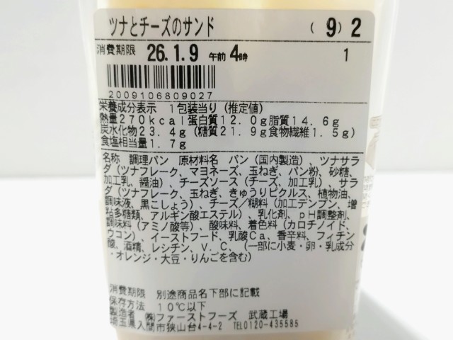 ファミリーマートの商品「冷たいまま食べる ツナとチーズのサンド」を食べてみました。