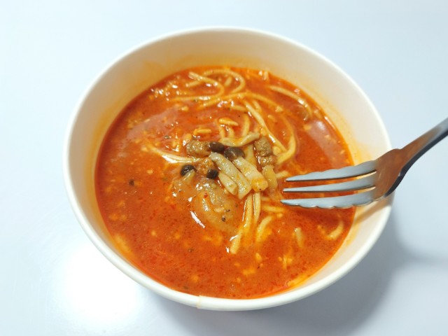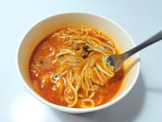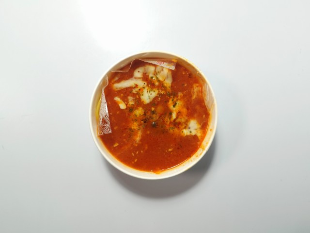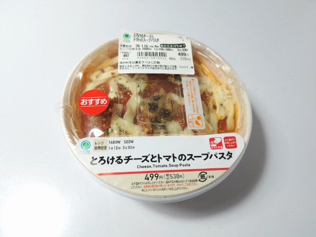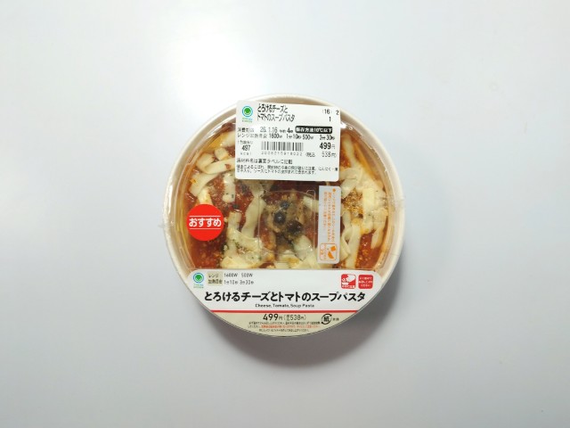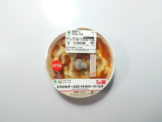 ファミリーマートの商品「とろけるチーズとトマトのスープパスタ」を食べてみました。