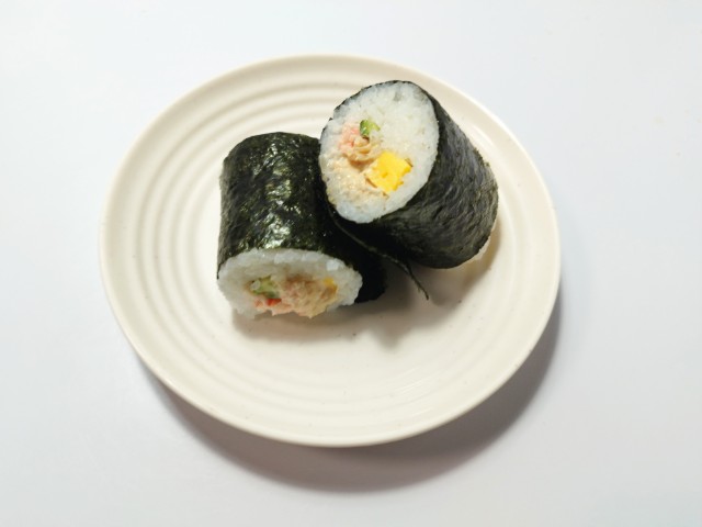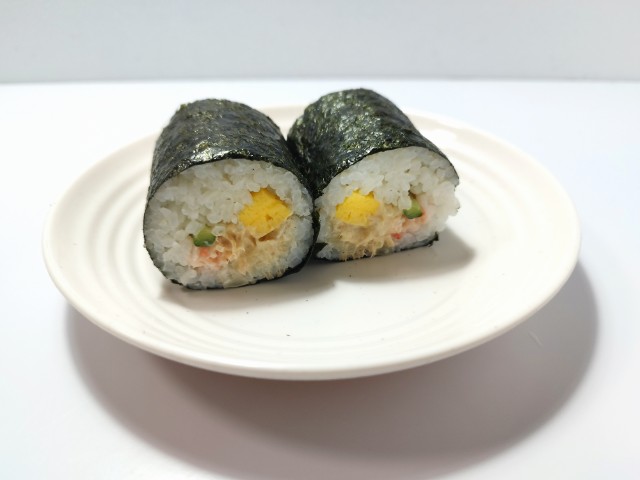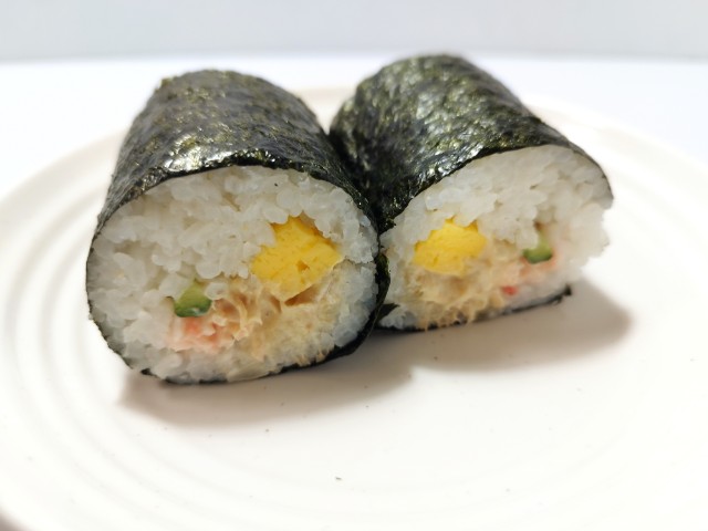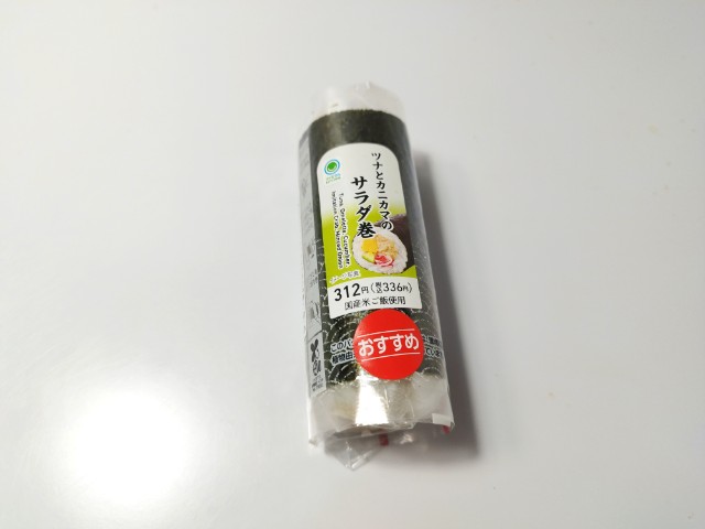 ファミリーマートの商品「手巻寿司 ツナとカニカマのサラダ巻」を食べてみました。