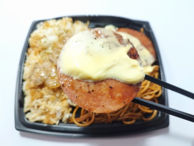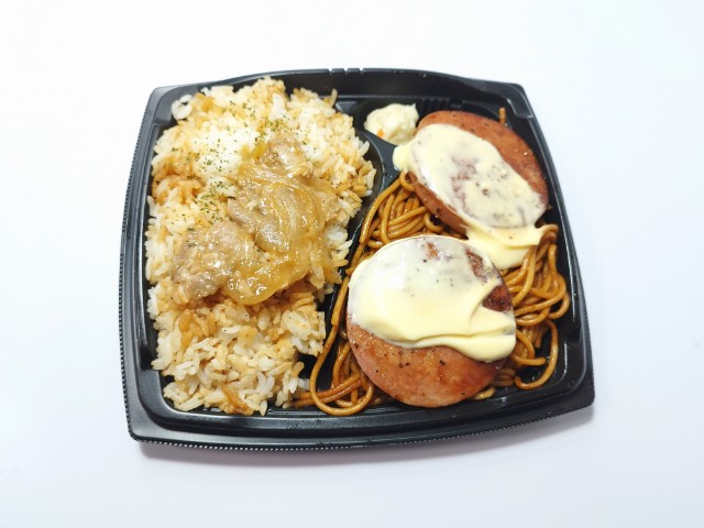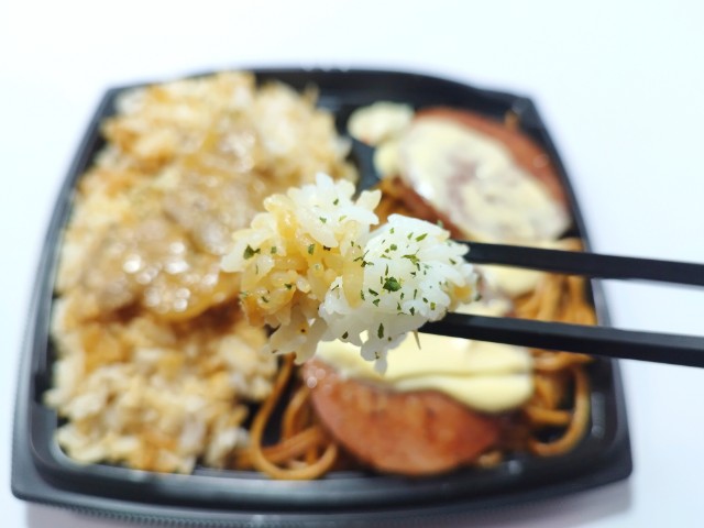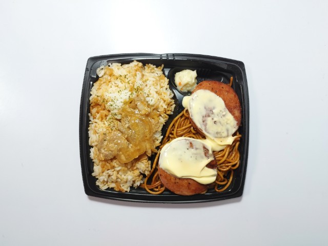 ソーセージステーキ生姜焼きがのったお弁当です。ずっしりとした重さもそうですが、圧倒的なカロリーとその見た目が気になって買ってみました。そんなソーセージ&生姜焼きですが、にんにく醤油だれで味付けされたご飯醤油の風味にんにくの味わいで、これだけでも美味しく食べ進められます。ご飯の反対側にはソース焼きスパが敷き詰められていて、ソースの風味パスタのほどよい弾力を楽しむ事が出来ます。トッピングソーセージステーキは厚みはもちろん、肉の旨味黒胡椒のピリッとした辛味からしマヨネーズのなめらかな味わいがあって、背徳レベルの美味しさです。生姜焼きソーセージステーキに比べてインパクトは弱いものの、ご飯が進む一品になっています。これだけのがっつり飯なので、当然ながら1,264kcalかなりの高カロリーとなっています。正直、ドカ食いダイスキもちづきさんコラボしたお弁当でも大体1,100kcalあたりで収まっているので、今回のお弁当が凄いのがよく分かります。ちなみに個人的にはがっつりチキン南蛮弁当(2025年6月11日発売)に次ぐ高カロリー弁当でした。当然ながらガッツリ食べたい方にはちょうどよいお弁当だと思います。ぜひソーセージ&生姜焼きを食べてみてください。