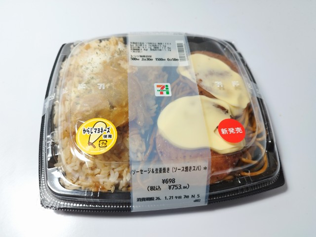 セブンイレブンの今週の新商品「ソーセージ&生姜焼き(ソース焼きスパ)」を食べてみました。