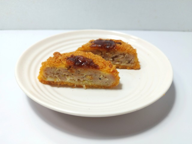 春キャベツを使ったメンチカツです。普通のメンチカツとはまた違った魅力のある商品で、見つけた瞬間に買ってしまいました。SNSでも「めっちゃうまい」や「春キャベツメンチカツを布教したい」など話題にもなっている春キャベツメンチカツですが、衣はサクッとした食感と香ばしさがあって、油のしつこさがなく、美味しいのひと言です。肉だねには春キャベツが使われていて、肉の旨味と春キャベツの甘みを楽しむことができます。また、普通のメンチカツと違って、肉汁はしっかりとありつつもさっぱりとした後味なのもポイントが高いと思います。大きさは手のひらサイズくらいで、おつまみやご飯のおかずにピッタリです。ぜひ春キャベツメンチカツを食べてみてください。