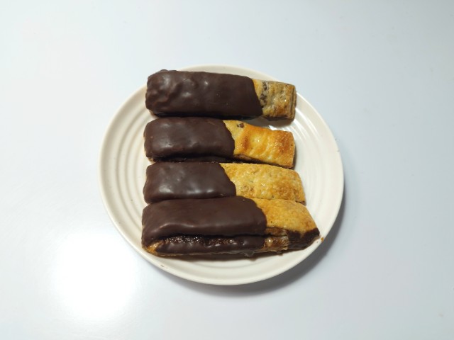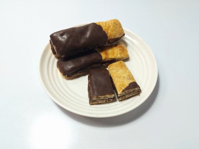 デニッシュ生地でチョコブラウニー生地を包んで焼き上げたチョコブラウニースティックです。見た目と商品名に惹かれて買ってしまいました。そんなチョコブラウニーデニッシュですが、デニッシュ生地はしっとりとした食感とチョコの風味で、安定の美味しさです。デニッシュ生地にかかっているチョココーティングはなめらかな食感とチョコの甘味で、生地とのバランスも良いです。中のチョコブラウニー生地はしっとりながらも歯応えのある食感で、チョコの味わいでハマってしまう美味しさです。チョコ尽くしではありますが、チョコの甘ったるさが残らなくて食べやすいと思います。4本入ですが、1本はふた口サイズくらいなので、一人でも普通に食べ切れます。もちろんシェアするにもピッタリです。ぜひチョコブラウニーデニッシュを食べてみてください。
