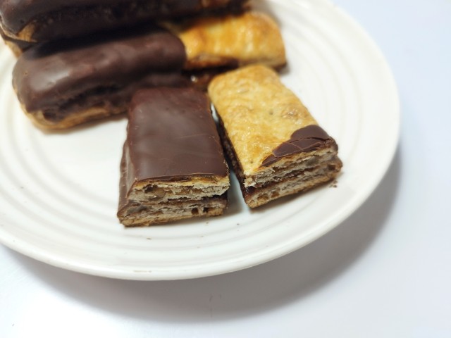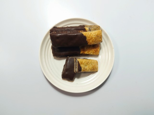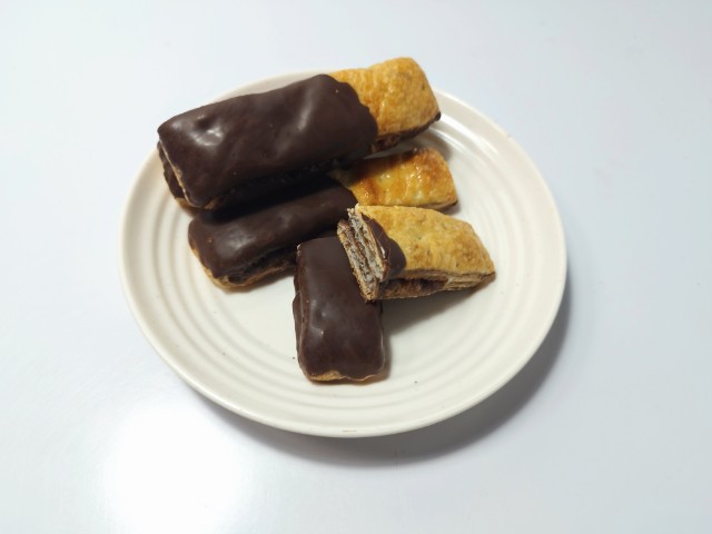 デニッシュ生地でチョコブラウニー生地を包んで焼き上げたチョコブラウニースティックです。見た目と商品名に惹かれて買ってしまいました。そんなチョコブラウニーデニッシュですが、デニッシュ生地はしっとりとした食感とチョコの風味で、安定の美味しさです。デニッシュ生地にかかっているチョココーティングはなめらかな食感とチョコの甘味で、生地とのバランスも良いです。中のチョコブラウニー生地はしっとりながらも歯応えのある食感で、チョコの味わいでハマってしまう美味しさです。チョコ尽くしではありますが、チョコの甘ったるさが残らなくて食べやすいと思います。4本入ですが、1本はふた口サイズくらいなので、一人でも普通に食べ切れます。もちろんシェアするにもピッタリです。ぜひチョコブラウニーデニッシュを食べてみてください。
