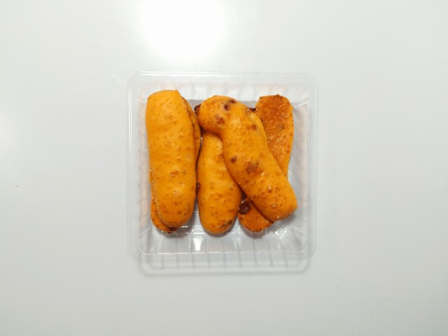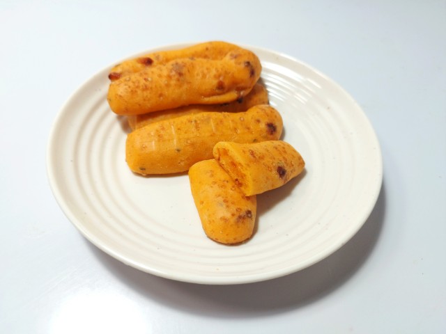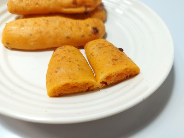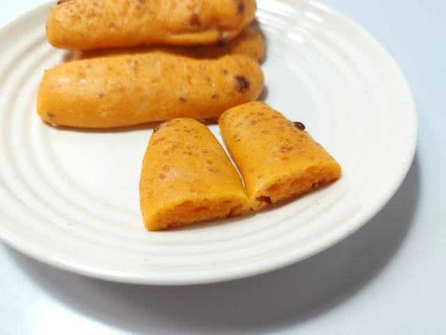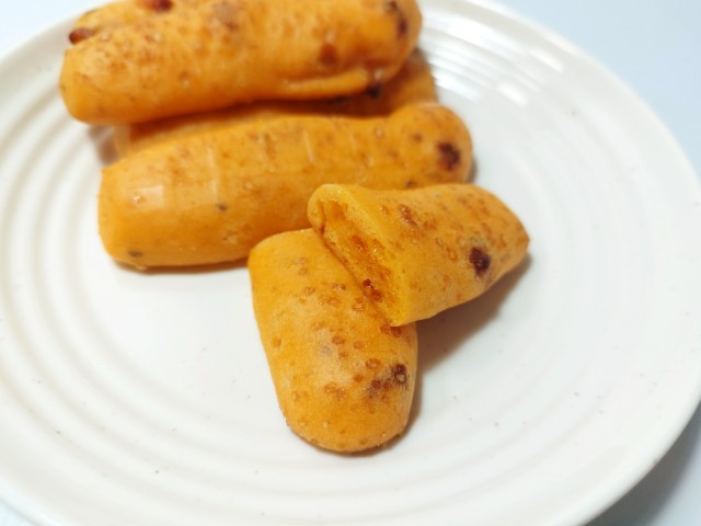 ポン・デ・チーズピザです。以前にポン・デ・セサミチーズ5本入り(2025年12月9日発売)がありましたが、今回はピザになっています。そんなポン・デ・チーズピザですが、生地はもちもちとした食感とピザソースの味わい、チーズの風味があって、食べ出すと止まらなくなる美味しさです。ピザ味のスティックパンといった感じで、おやつや小腹が空いた時にオススメです。5本入ですが、1本はふた口サイズくらいなので、一人でも普通に食べ切れます。もちろんシェアするにもピッタリです。ぜひポン・デ・チーズピザを食べてみてください。