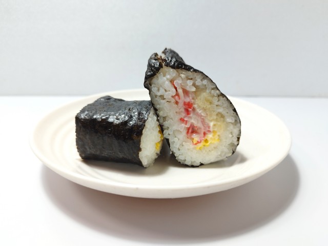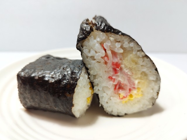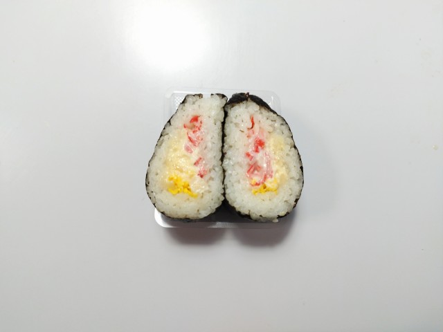 カニカママヨを使ったサンド寿司です。以前にカニカマコーンマヨネーズ和えを使ったサンド寿司 カニカマコーン(2025年2月11日発売)がありましたが、今回はカニカママヨネーズ和えになっています。そんなサンド寿司ですが、カニカマの旨味マヨネーズの酸味があって、間違いのない美味しさです。一緒に入っている錦糸玉子たまごの甘味しっとりとした食感で、カニカママヨとの相性抜群です。大きさは普通のおむすびサイズくらいなので、小腹が空いた時主食にあと一品追加したい時にピッタリだと思います。ぜひカニカママヨサンド寿司を食べてみてください。