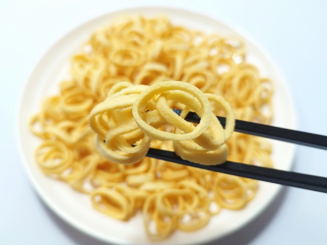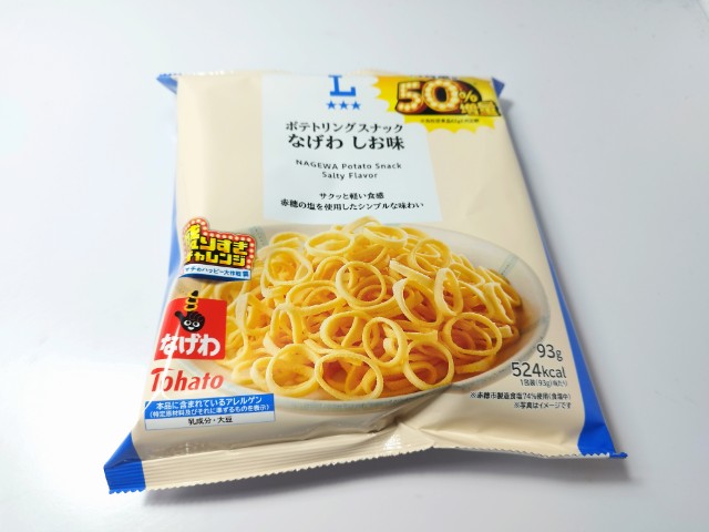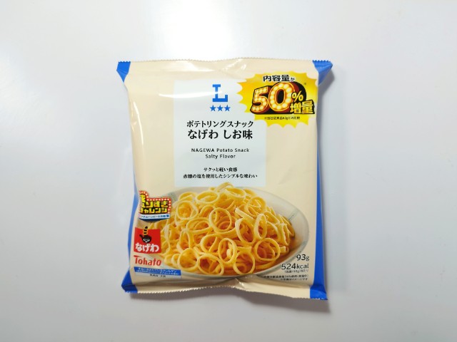 ローソンの今週の新商品「ポテトリングスナック なげわ しお味 50%増量」を食べてみました。