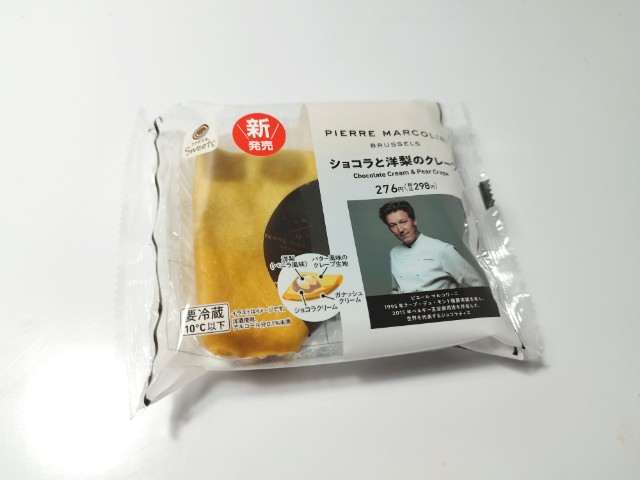 ファミリーマートの今週の新商品「ピエール マルコリーニ監修 ショコラと洋梨のクレープ」を食べてみました。