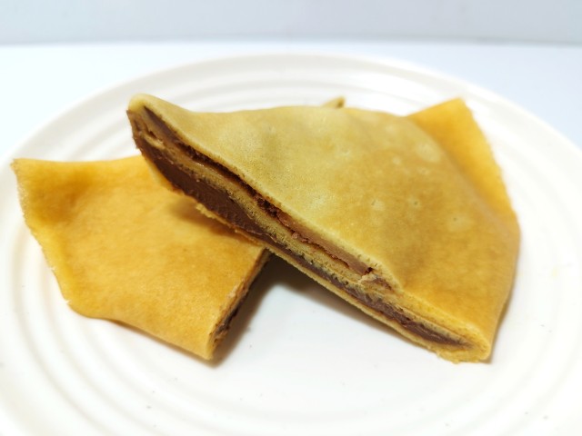 ピエールマルコリーニ監修のショコラと洋梨のクレープです。ファミリーマートでは1月27日より「ピエール マルコリーニ」監修商品を発売していて、今回の商品もその対象商品の一つになっています。ちなみに「ピエール マルコリーニ」はベルギー王室御用達のショコラティエで、こだわりのカカオから作られるチョコレートが世界中で人気を博しているそうで、2026年には日本上陸25周年を迎えるとの事です。そんなショコラと洋梨のクレープですが、生地はもちっとした食感とバターの風味で、これだけで美味しく食べ進められます。中にはショコラクリームと洋梨、別の層にガナッシュクリームが入っていて、ショコラクリームはふんわりとした食感とチョコの甘味、洋梨はしっとりとした食感とバニラの風味、ガッシュクリームはなめらかな食感と濃厚なチョコの味わいで、間違いのない美味しさです。チョコの濃厚な味わいに洋梨のフルーティーさがピッタリと合っていて、正直コンビニスイーツとは思えないくらいのクオリティだと思います。大きさは一人分にちょうどよく、おやつや食後のデザートにピッタリです。ぜひショコラと洋梨のクレープを食べてみてください。