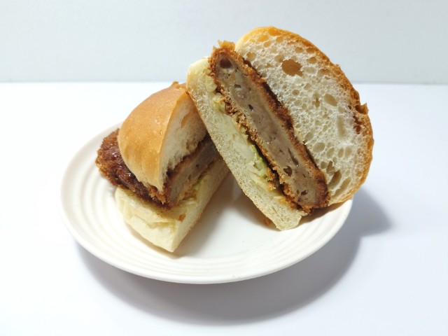 ファミリーマートの商品「はみでたメンチカツバーガー」を食べてみました。