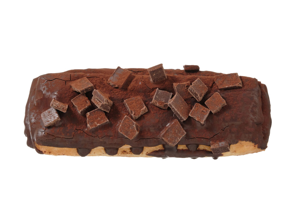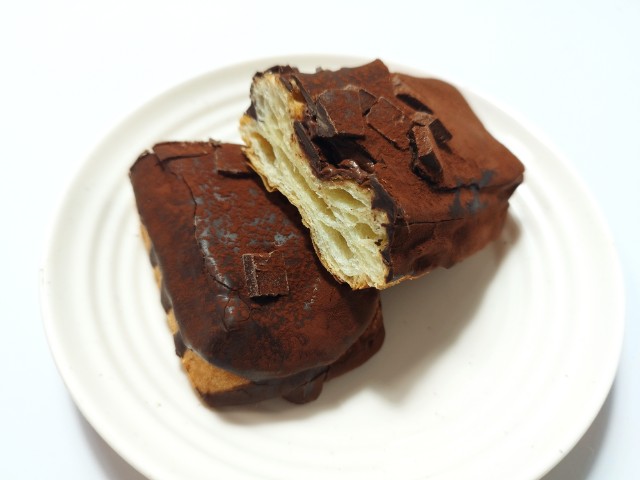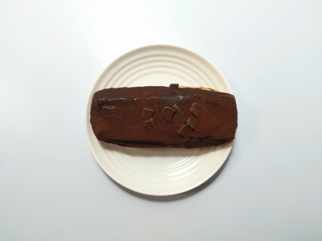 チョコのクリーム、コーチング、チャンク3種をデニッシュ生地に盛り付けたチョコ感のある菓子パン。